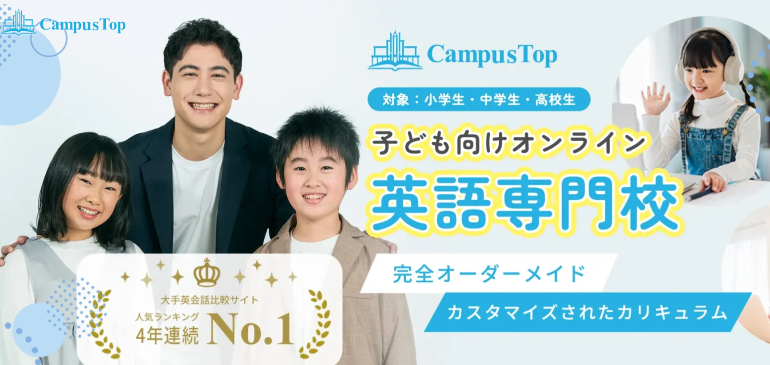 そうしたニーズに応えるために設立されたのが、小学生からのオンライン英語専門校「CampusTop(キャンパストップ)」です。オンラインの利便性と専門校ならではの質の高いカリキュラムを両立し、多くの子どもたちの英語学習を成功に導いています。CampusTopが選ばれる理由と、その学習効果を徹底解説します。