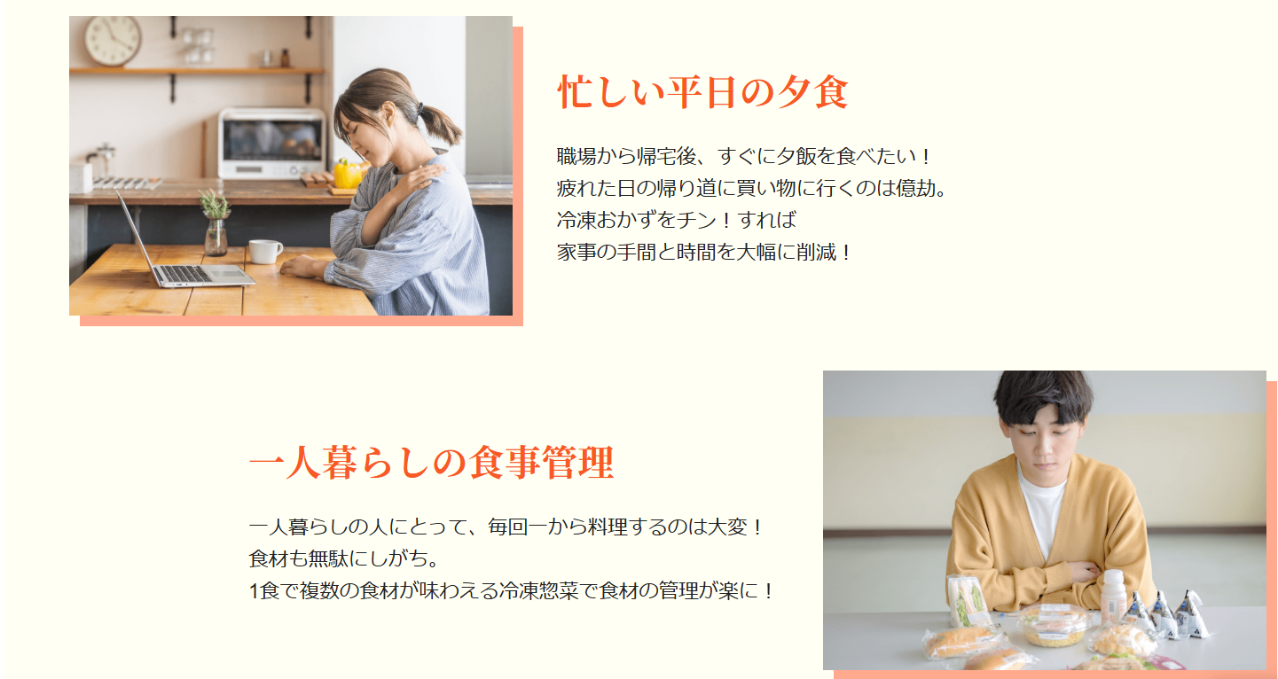 食事の準備は、冷凍庫から出して電子レンジで温めるだけ。忙しい日の夕食や、一人での昼食準備にかかる手間が劇的に減ります。買い物、献立作り、調理、後片付けの全てから解放される、まさに究極の時短術です。疲れて帰宅した日でも、罪悪感なく健康的な食事が摂れるのは嬉しいですね。