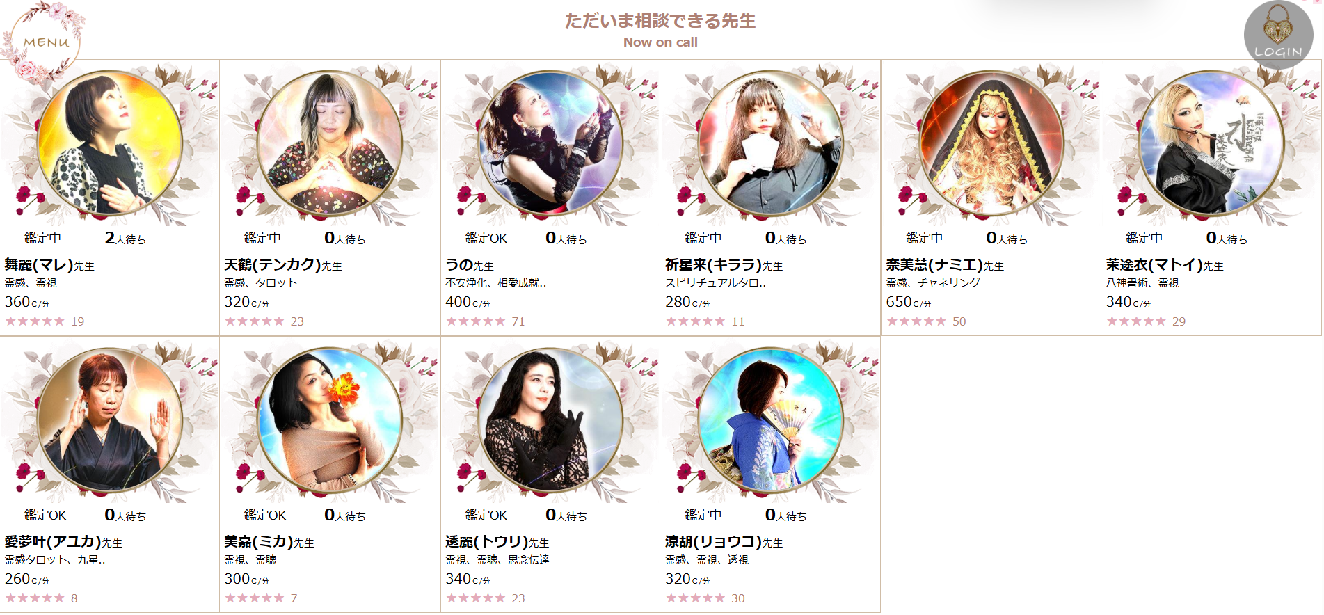 アリスに在籍しているのは、厳しい選考基準をクリアした、業界トップクラスの「当たる」と評判の実力派占い師ばかりです。霊感、霊視、タロット、占星術など、多岐にわたる占術を操る先生たちが、あなたのどんな複雑な悩みにも対応してくれます。