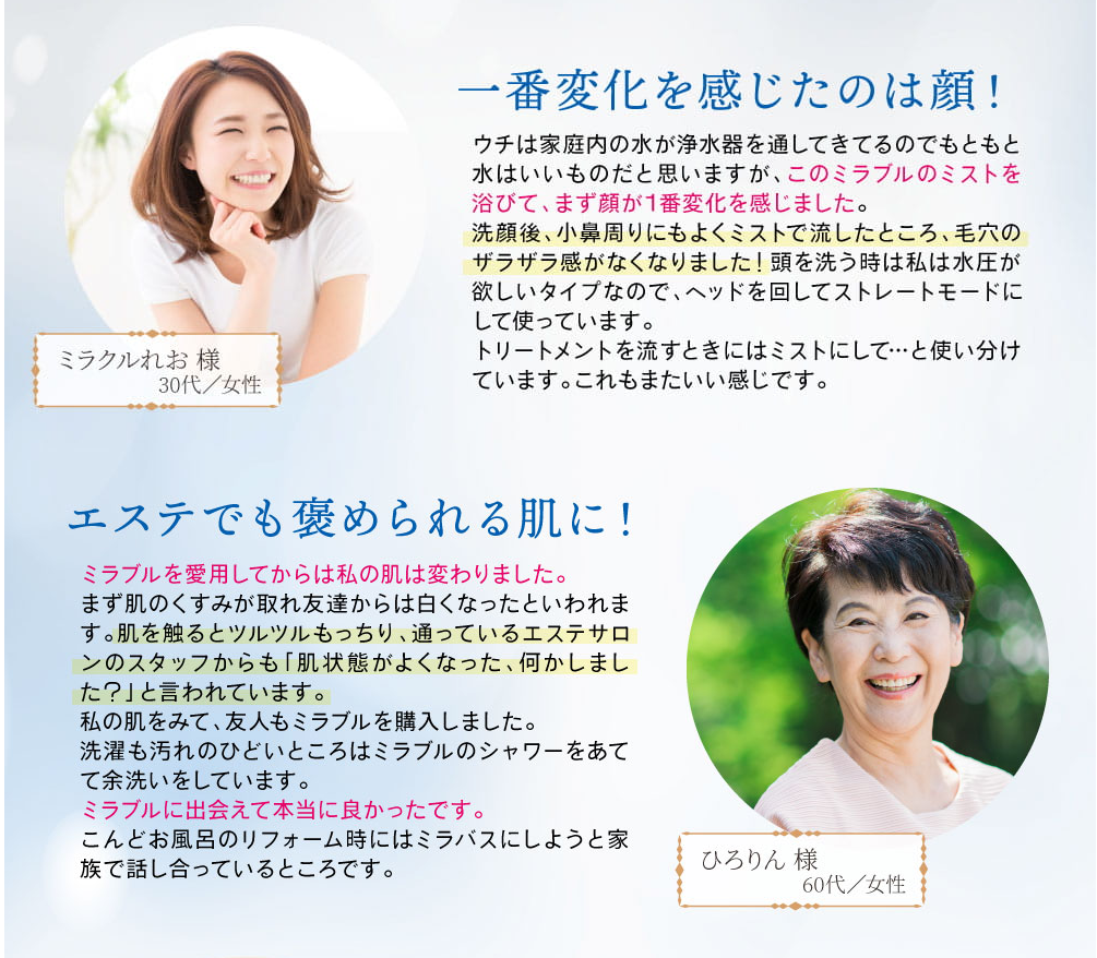 「シャワーヘッドにしては高いのでは?」と購入を迷う方もいるかもしれません。しかし、ミラブルはエステや美容院に通う費用を考えると、自宅で毎日使える美顔器として考えると、コストパフォーマンスは非常に優れています。